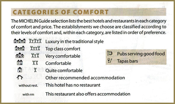 Guiden sorterar ett urval av hotell och restauranger i olika prisklasser. Vissa restauranger belönas med en ”Bib Gourmand” som indikerar att det är en bra restaurang som serverar bra mat till rimliga priser. I Frankrike till exempel, serverar alla Bib Gourmand restauranger tre rätters middagsmenyer för under 35 Euro. I Guide Michelin New York City finns en kategori av restauranger där du äter middag för under 25 dollar. Så guiden hjälper läsaren att hamna rätt när man kommer till en ny stad och inte vill äta på ”turist-restaurangen”.