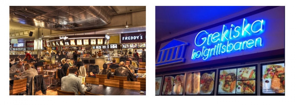 I gallerior och i city. Det finns ganska många restaurangtorg eller food courts som de kallas i Stockholm. Dessa bjuder på massor av variation på mat och nationaliteter. Ofta erbjuds prisvärda rätter eftersom konkurrensen funkar utmärkt på såna här platser. Här delar reataurangerna i courten på bord och stolar, så ni kan samlas på ett och samma ställe och ändå äta från olika kök. I listan som följer hittar du restauranggator och torg med olika mix som vi valt att peka ut.